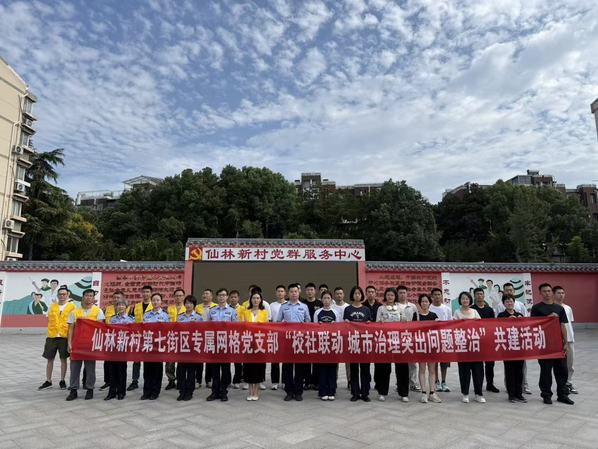 近日,仙林新村第七街区专属网格党支部联合我院橄榄绿青年志愿者服务队以及江宁监狱共同开展了“校社联动 城市治理突出问题整治”共建活动。