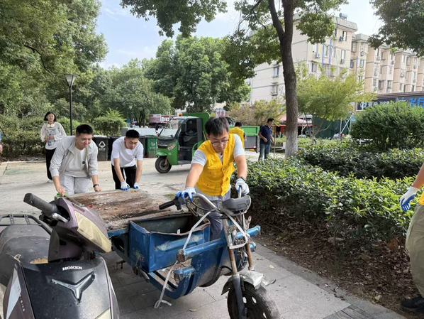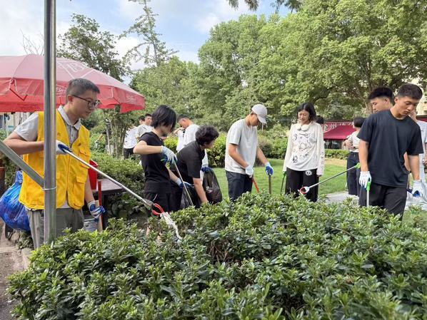 此次活动的地点为仙林新村老农贸市场及周边公共区域。老农贸市场承载着居民们日常采购的烟火记忆,却也因往来人流量大,难免出现垃圾散落、杂物堆积等问题。志愿者们化身“环境美容师”,阳光透过树叶的缝隙洒在志愿者的身上,汗水浸湿了他们的衣领,额头上的汗珠顺着脸颊滑落,却丝毫没有减退大家的热情。看着原本散落垃圾的道路逐渐变得整洁,志愿者的脸上都露出了欣慰的笑容,“虽然累得腰酸背痛,但看到社区一点点变美,就觉得所有的付出都值得!”
