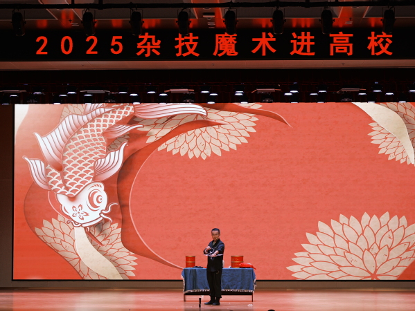 1017日晚,由南京市杂技家协会、栖霞区文学艺术联合会主办,南京警察学院承办的“2025杂技魔术进高校”活动在我院知行楼大礼堂举行,学院近千名师生观看演出。