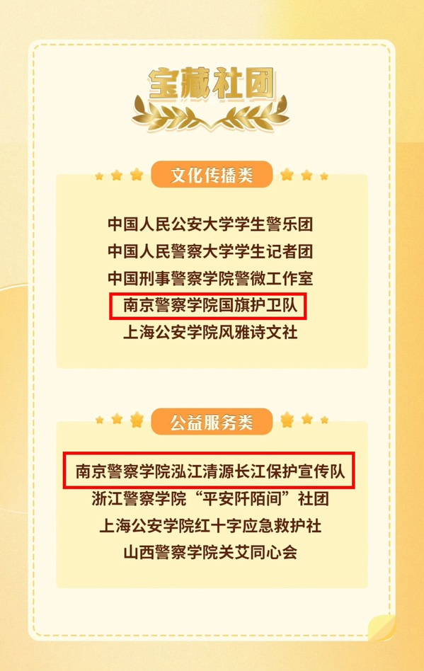 “法润青春·宝藏集结”公安院校特色社团风采展评活动自今年4月启动以来,共有来自全国25所公安院校的84个社团参与其中。我院警乐团、国旗护卫队、泓江清源长江保护宣传队、无人机创新工作室和警察战术研究社5个学生社团脱颖而出进入线上展示与投票环节。经过线上投票、主办方综合评价,我院国旗护卫队、泓江清源长江保护宣传队分别被评为文化传播类和公益服务类“宝藏社团”,无人机创新工作室被评为“人气社团”,警乐团被评为“潜力社团”,学院获评“优秀组织奖”。