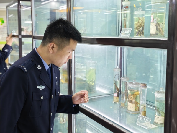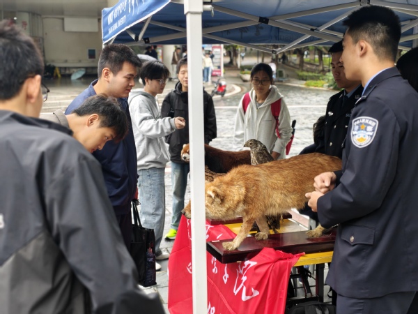 随后进行的是主题宣讲,我院野生动物保护协会的同学们依托其刑事科学技术等专业背景,带来了精心准备的野生动物标本展示与讲解。同学们从标本的科学制作、司法鉴定中的应用,讲到其在普法宣传、物种研究和生态保护中不可替代的价值。宣讲内容专业详实,逻辑严密,充分展现了警院学子的专业素养与社会责任感,现场互动频繁,掌声不断。