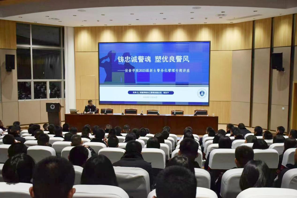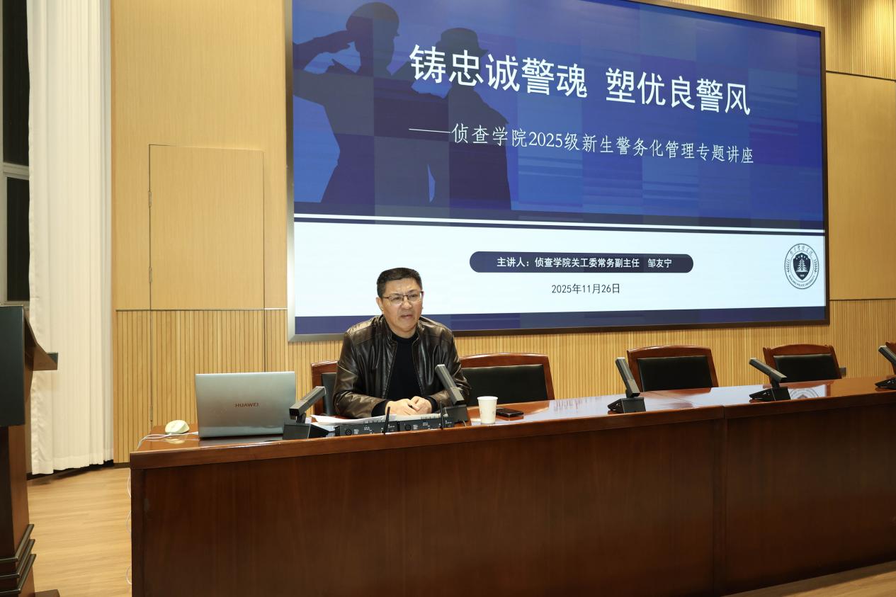 为进一步引导2025级新生扣好从警之路的“第一粒扣子”,深刻理解警务化管理的核心内涵与重要意义,11月26日晚,侦查学院关工委常务副主任邹友宁老师以“铸忠诚警魂,塑优良警风”为主题,为侦查学院2025级新生带来了一场生动的专题讲座。