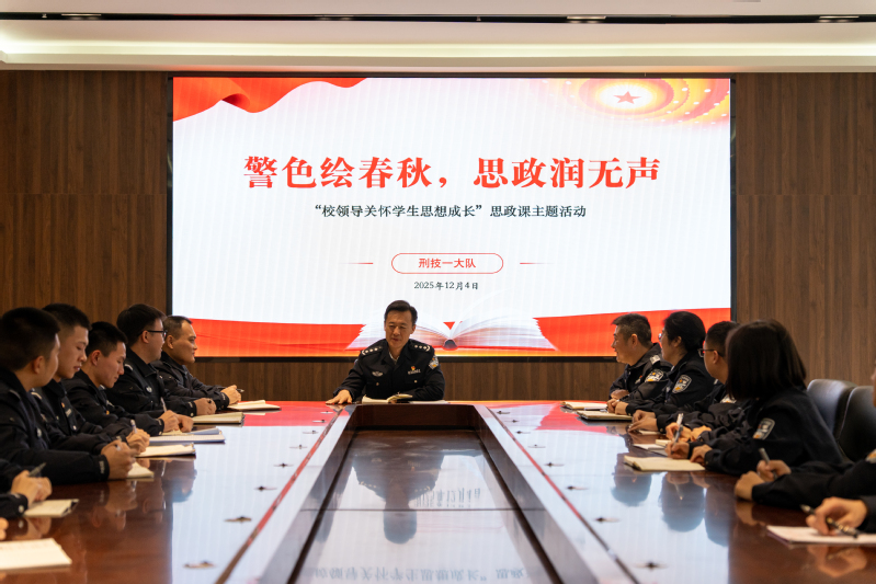 为贯彻落实学院党委关于加强领导干部密切联系学生的工作部署,推动立德树人根本任务走深走实,助力学生思想成长和能力提升,12月4日,南京警察学院党委书记肇恒伟为刑技一大队学生干部讲授“警色绘春秋,思政润无声”主题思政课。