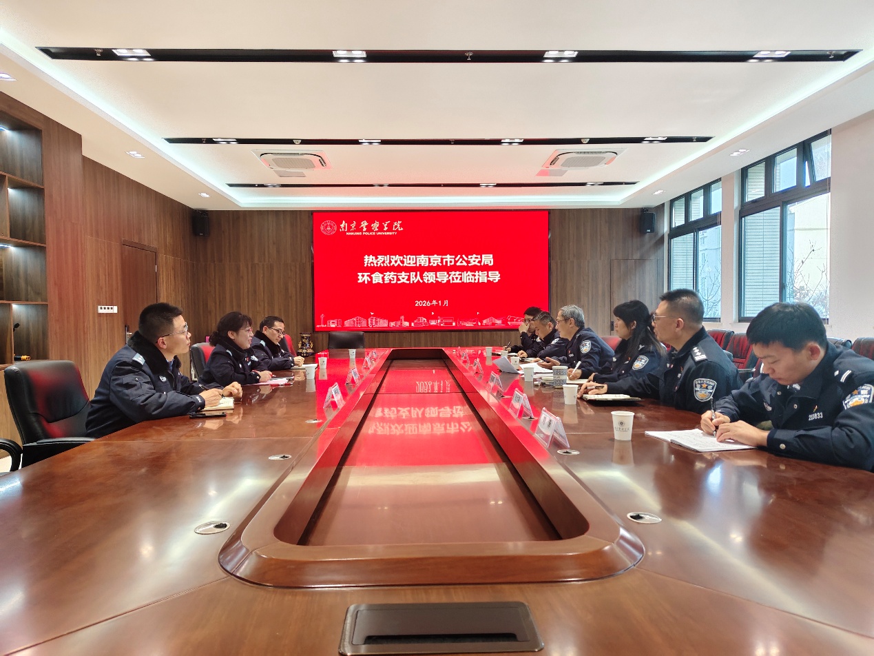 1月13日下午,南京市公安局环食药侦支队政委阚道明率队来院调研交流,刑事科学技术学院副院长薛晓明、周用武和相关教师参与交流及考察活动。