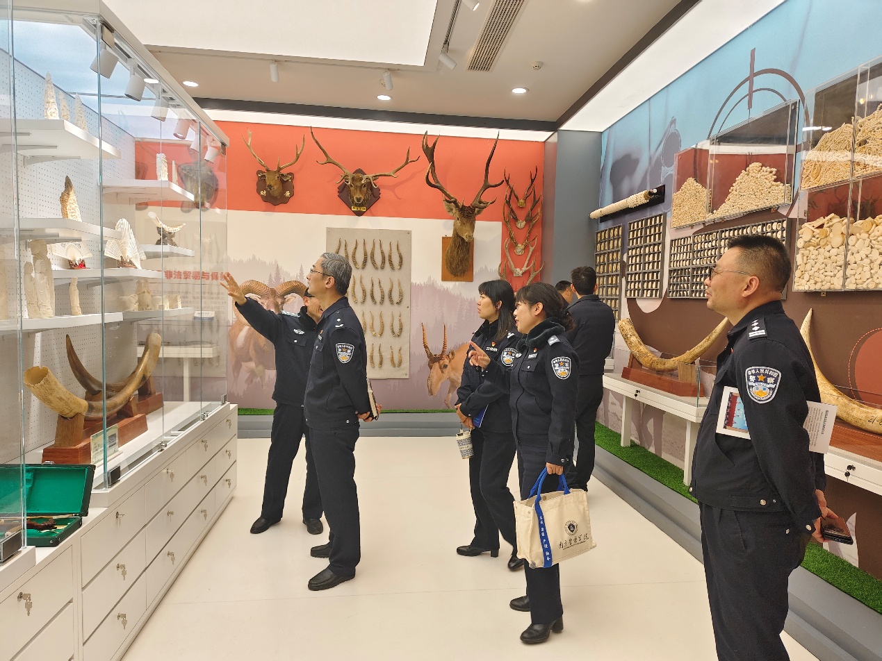 薛晓明代表学院对阚道明一行的到访表示热烈欢迎,感谢支队一直以来对专业建设和人才培养的支持,介绍了学院的特色和优势,特别是学院在生态警务领域的人才培养、科技攻关和服务实战等方面的举措和成效,并就实战化资源的共建、共享进行了交流。周用武围绕鉴定中心的建设与发展进行了分享,重点就鉴定业务合作、标本馆建设等工作进行了探讨。