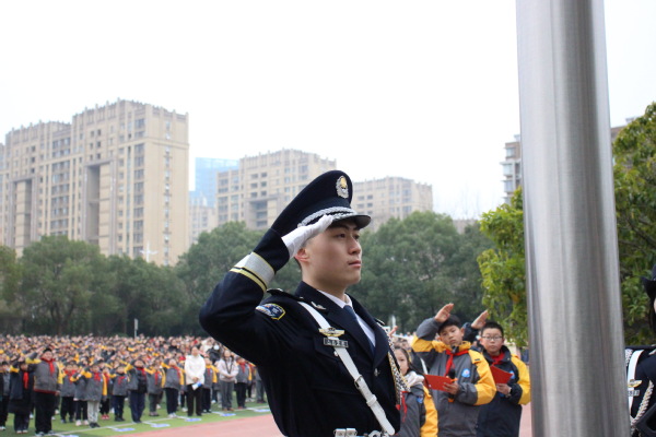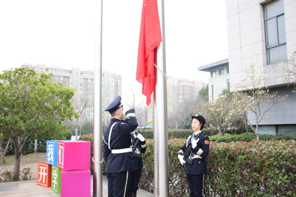 3月5日上午,我院国旗护卫队受邀走进南京市栖霞区实验小学尧辰路校区,在学校2026年开学典礼上执行升国旗任务,厚植青少年爱国情怀。