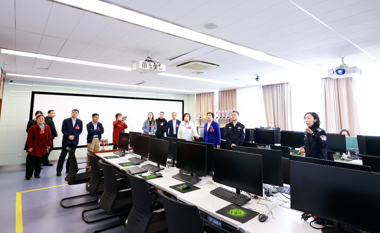 代表们实地走访了侦查学院、刑事科学技术学院、信息技术学院相关实验室,调研学院教学实训、学科建设、人才培养等情况,详细了解学院办学特色和服务地方发展工作成效。代表们对学院在科技兴警方面的积极探索、人才培养方面的特色做法表示赞赏,充分肯定了学院在生态文明教育与生物多样性保护方面的扎实成效,并对学院绿色校园建设与生态育人理念给予高度评价。