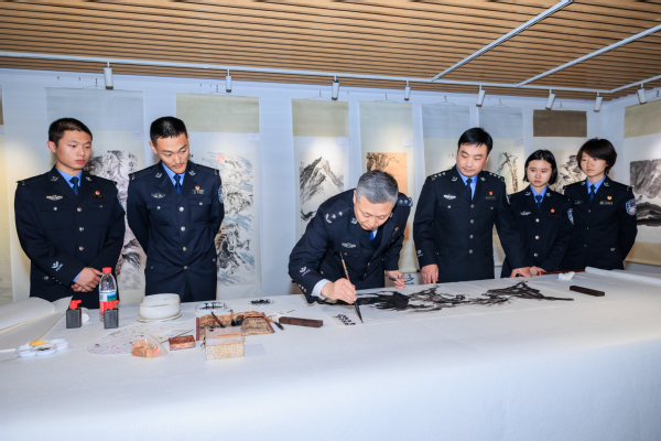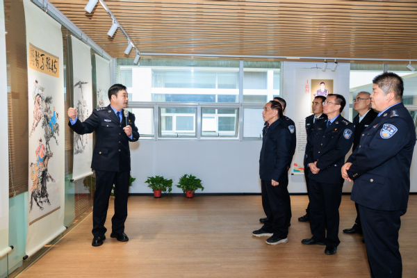 4月23日下午,南京警察学院“骐骥驰骋”王政纲丙午书画汇报展在学院艺术馆开幕。党委书记肇恒伟到场参观指导,党委委员、副院长骆家林,总务长、四级职员包学文出席开幕式,展品作者、我院2003届校友、宁波市公安局鄞州分局一级警长王政纲以及100余名师生代表参加活动。