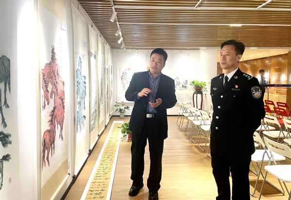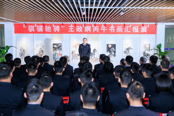 本次书画展共展出49幅佳作,不仅是一场艺术交流,更是一堂生动的思政课。一幅幅骏马画作,或昂首挺立、目光坚定,守护一方天地;或凝神伫立、心有定向,不改前行初心,每一笔笔墨都勾勒着忠诚的模样,每一帧画面都诠释着信仰的坚守。作品将骏马的忠诚品格、团结特质、严谨风范、勤奋风骨,深深烙印在警院学子心中,为警院育人注入了深厚的精神力量。